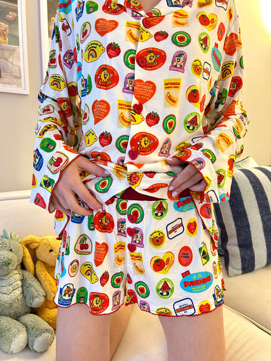 Retro Fruit Sticker Optimist Pajama Set- PJ Top + PJ Shorts