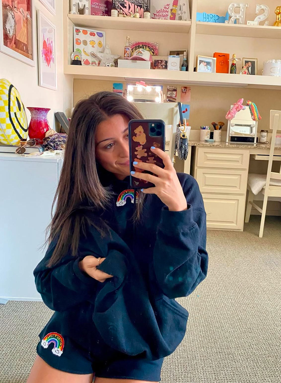 Black Hoodie & Sweatshorts Set + Double Cloud Rainbow Patch